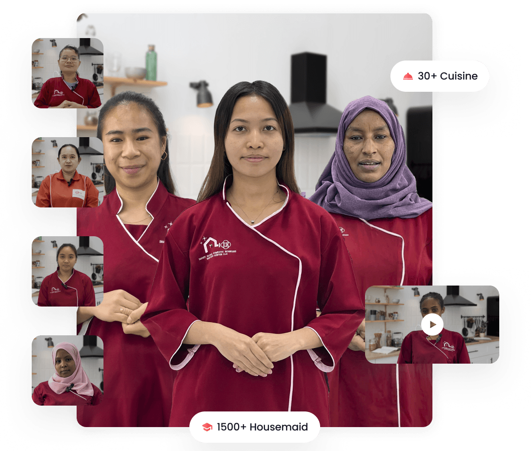 مهارات متعددة كاطبخ، التنظيف، رعاية الاطفال وكبار السن